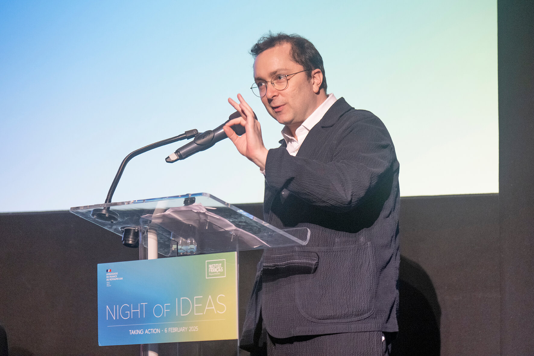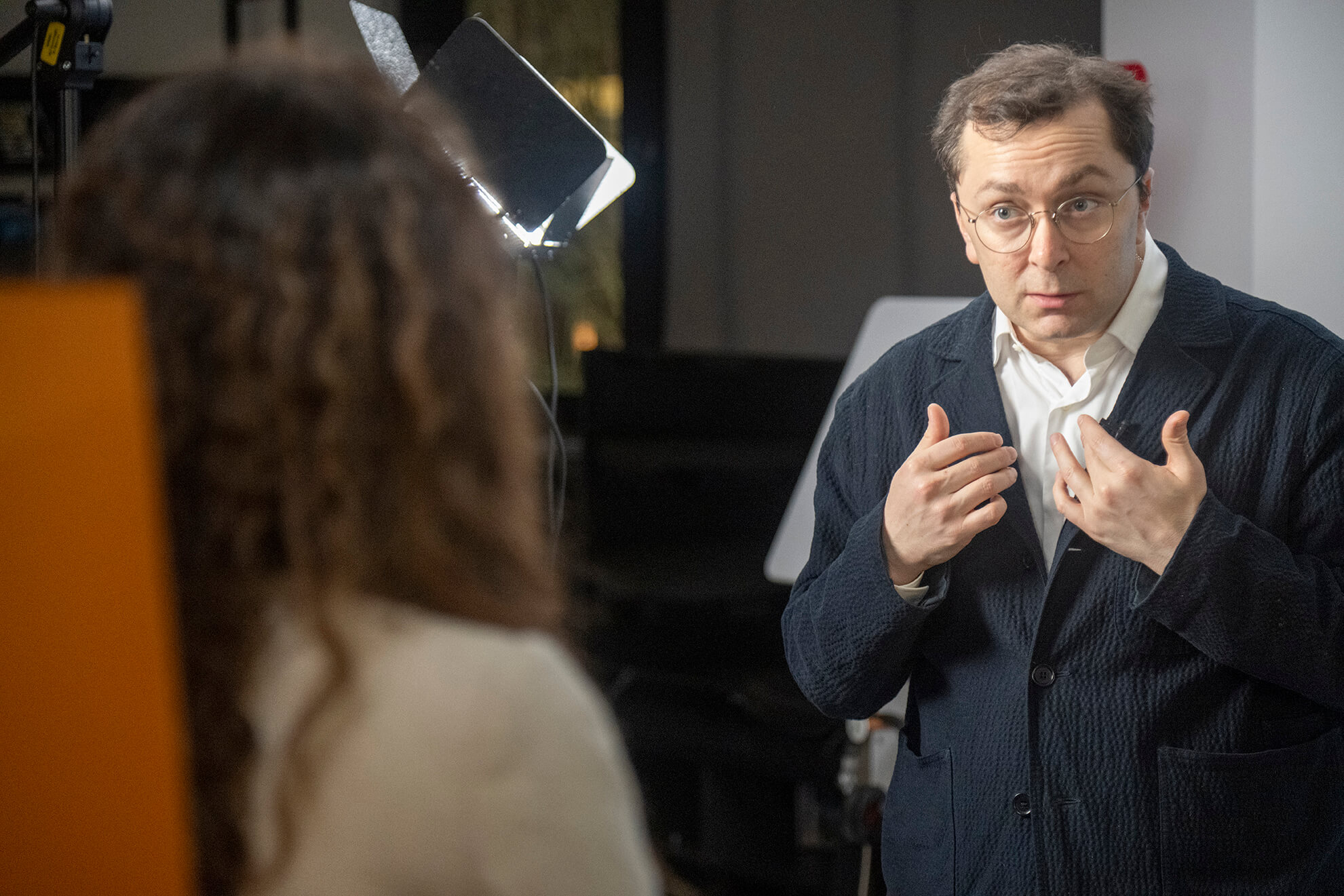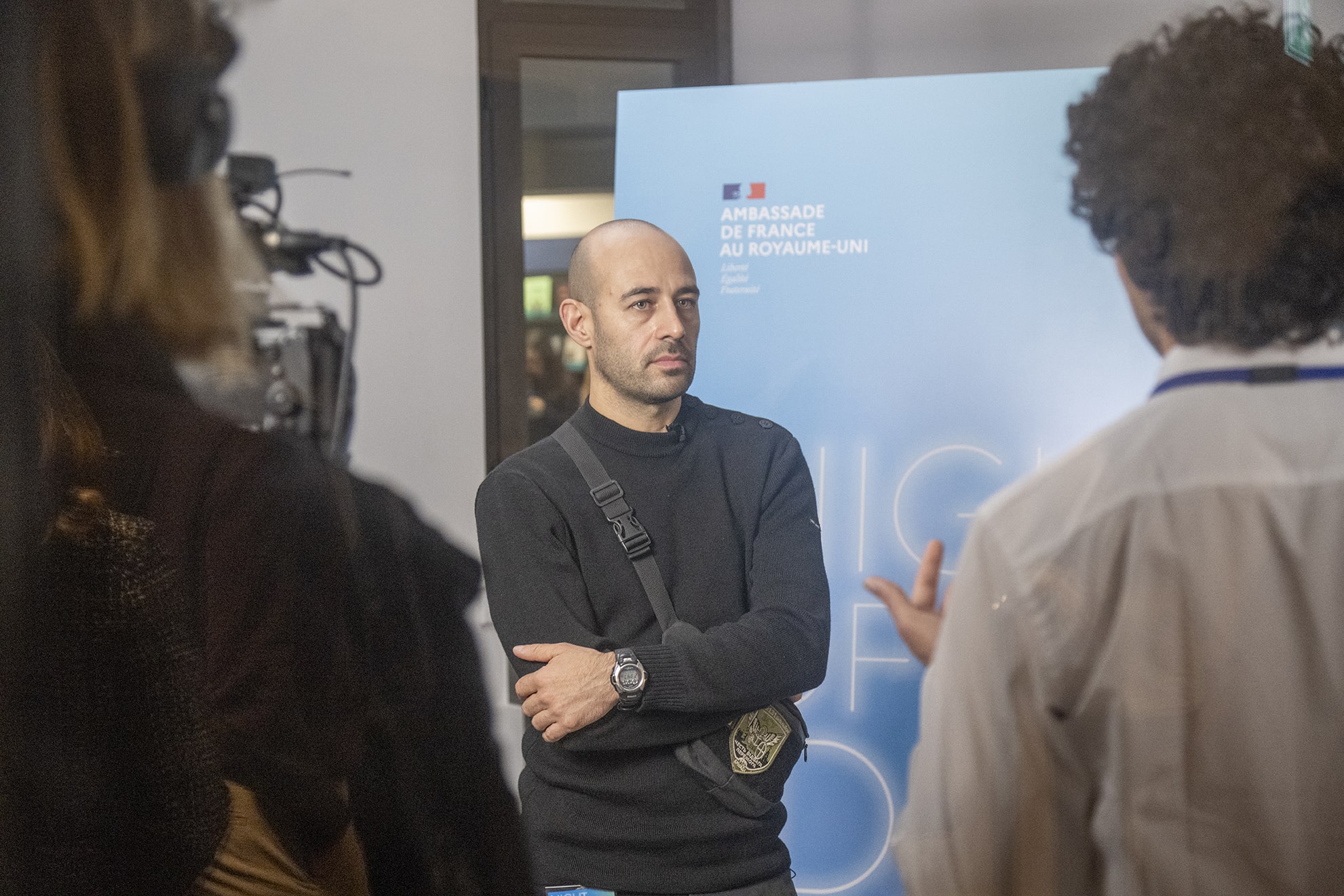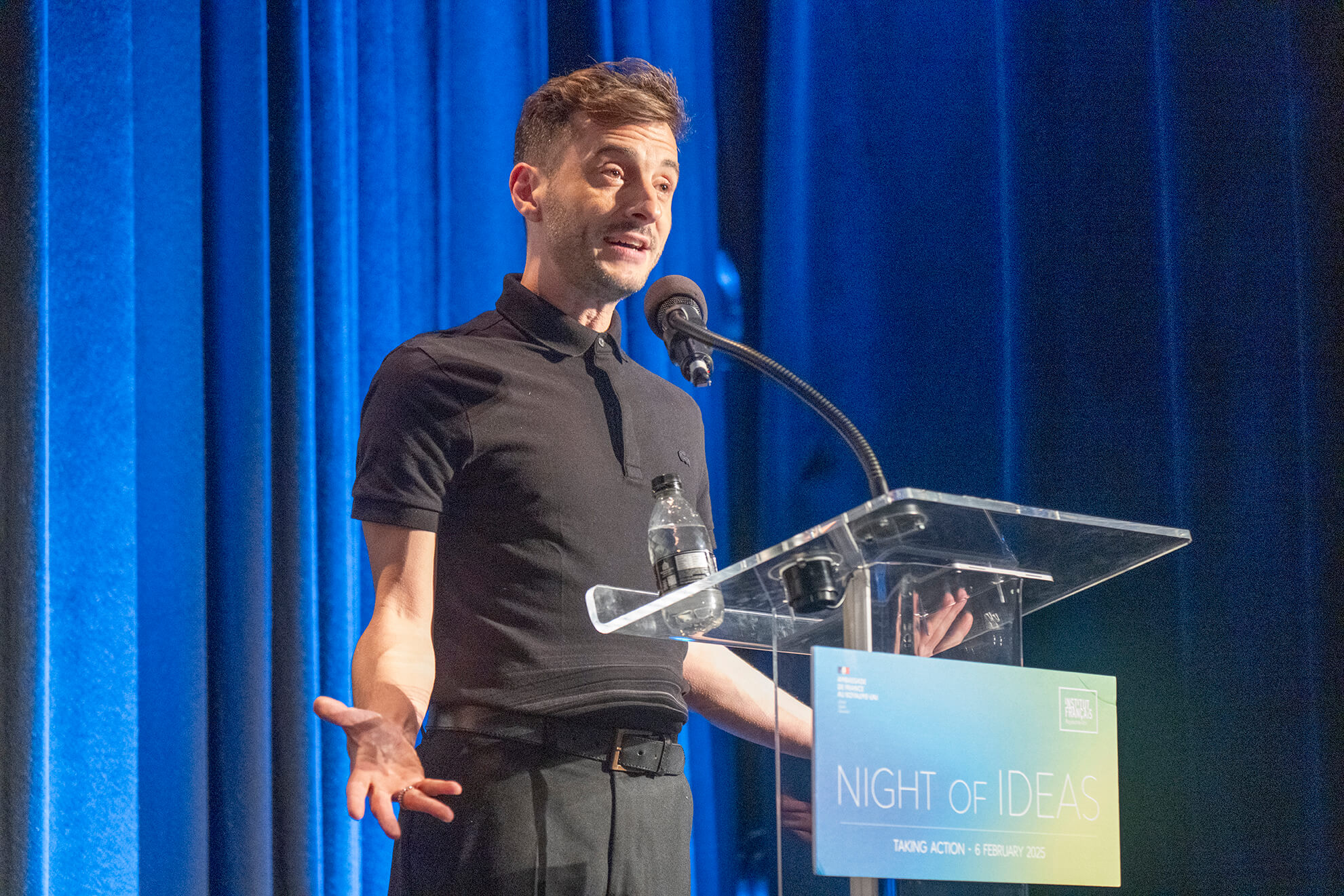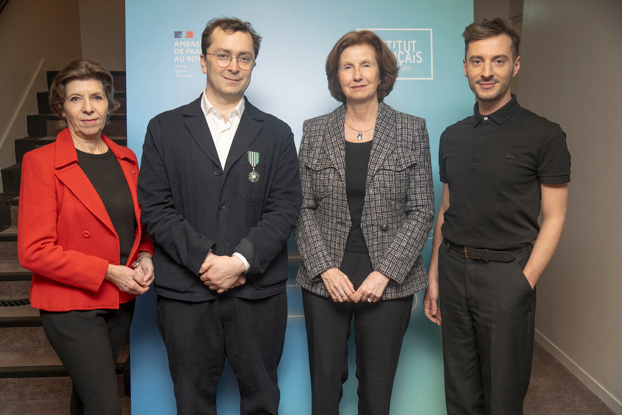 Alexander Zeldin receiving the insignia of Chevalier de l’Ordre des Arts et des Lettres